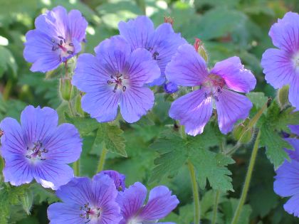 De geranium is een vaste plant die ook prima als bodembedekker is geschikt. Verschillende soorten kunnen goed schaduw verdragen dus onder struiken of bomen kan het ook, wel hebben ze enig zonlicht nodig anders zal de bloei beperkt blijven. Het gezegde 'achter de geraniums zitten' geld niet voor deze (buiten)soort maar meer voor de pelargonium die vaak binnen op de vensterbank overwinterd. Er zijn vele soorten variërend in kleur, hoogte en bladvorm. De moeite waard om eens 'in te duiken' en keuzes te maken, én ze een plekje in de tuin te gunnen. Zelf hou ik erg van Geranium 'Johnsons Blue', een helderblauwe soort die 40 cm hoog word en mei- juli bloeit, aan het einde van een zonnige dag in de avondschemering is het bijna of de plant licht geeft, bijzonder opvallend!