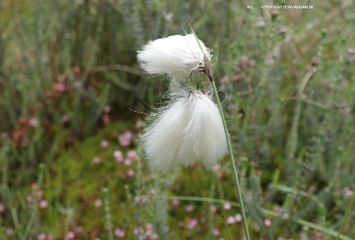 Dit is Eriophorum angustifolium ofwel: veenpluis, dit is geen 'uitgebloeide' bloem maar de échte bloem / bloeiwijze. Waterplanten die voor een ander beeld zorgen. Maar ook de eerste zomerbloeiers: Salvia, Nepeta, rozen, Iris, Digitalis, Geraniums om maar enkele te noemen, laten al bloemen zien. Een klimmer als Blauwe regen / Wisteria is al enigszins uitgebloeid maar daar nemen de rozen, Clematis en andere klimplanten graag 'het stokje' van over en geven kleur en geur.