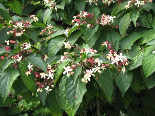 Om soms even in een blad te knijpen (kneuzen volgens de boeken) en dan te ruiken geeft leuke verrassingen, zo is de pindakaasstruik - Clerodendrum, pas goed te ruiken na aanraken (hieronder). Rozemarijn is een kruid dat je pas goed ruikt na aanraken van de struik.